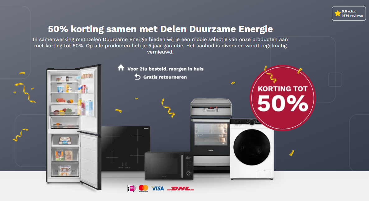 Als lid van onze coöperatie helpt u mee aan een beter klimaat en geniet u van de voordelen van lokaal opgewekte zonnestroom. Maar dat is nog niet alles. Als lid krijgt u ook toegang tot speciale acties dankzij onze samenwerking met Inventum en Delen Duurzame Energie. Hierdoor kunt u duurzame producten kopen met kortingen tot wel 50%. Bovendien krijgt u 5 jaar garantie op al deze producten. Het aanbod is breed en wordt steeds vernieuwd.
